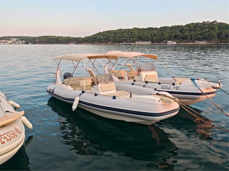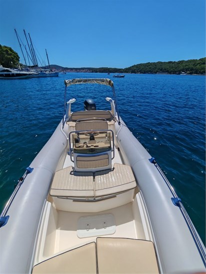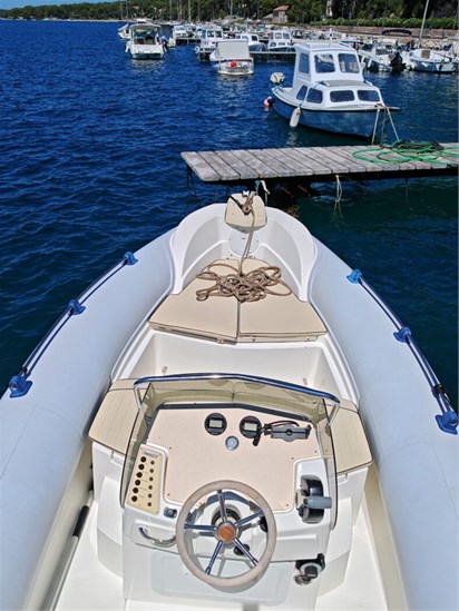 podijeliSchlauchboot, 6,50 m lang. Motorleistung: 150 PS, Yamaha Viertaktmotor. Maximalbelegung: 8 Personen. Kraftstofftank: 100 Liter. Ausstattung: Bimini-Top, Sonnendeck, Dusche, GPS, Badeleiter